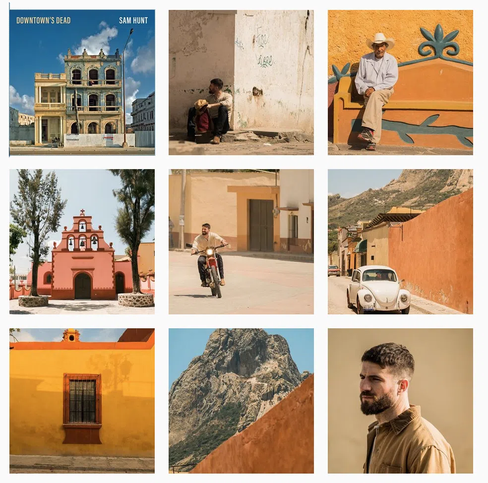 To help promote his new single, “Downtown’s Dead,” Sam Hunt posted nine photos on Instagram on May 15 that appear to depict the colonial village of Bernal, Mexico.
